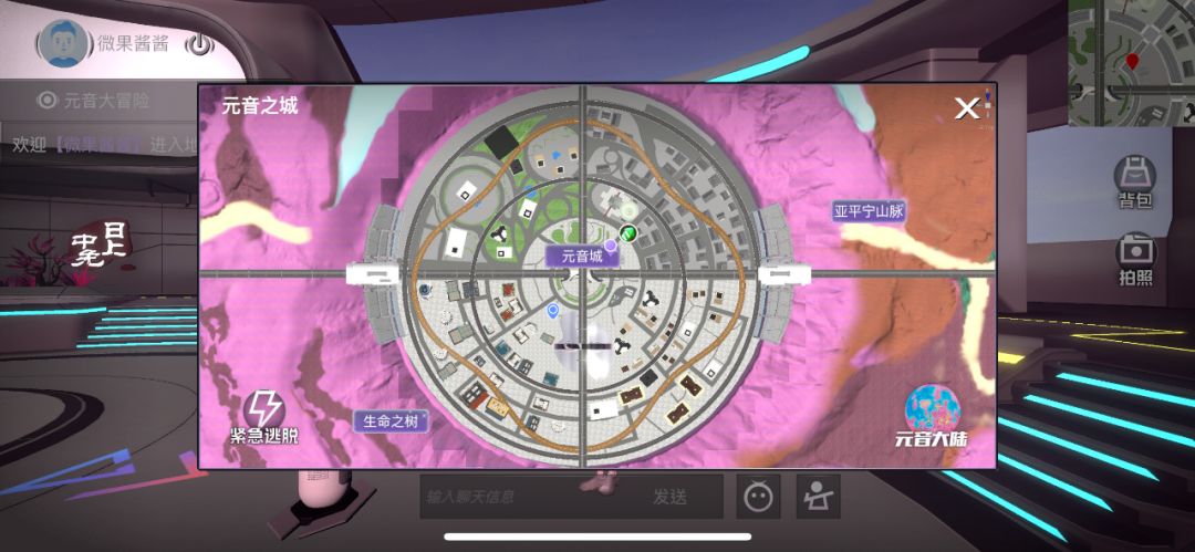 从右上角的地图上也可以看出这个平台尚未开发完善,荒芜的地方不少。同时,地图并不支持自动位移,除了可以通过“紧急逃脱”回到出生点,其他位置只能靠自己跑过去,体验起来并不便捷。