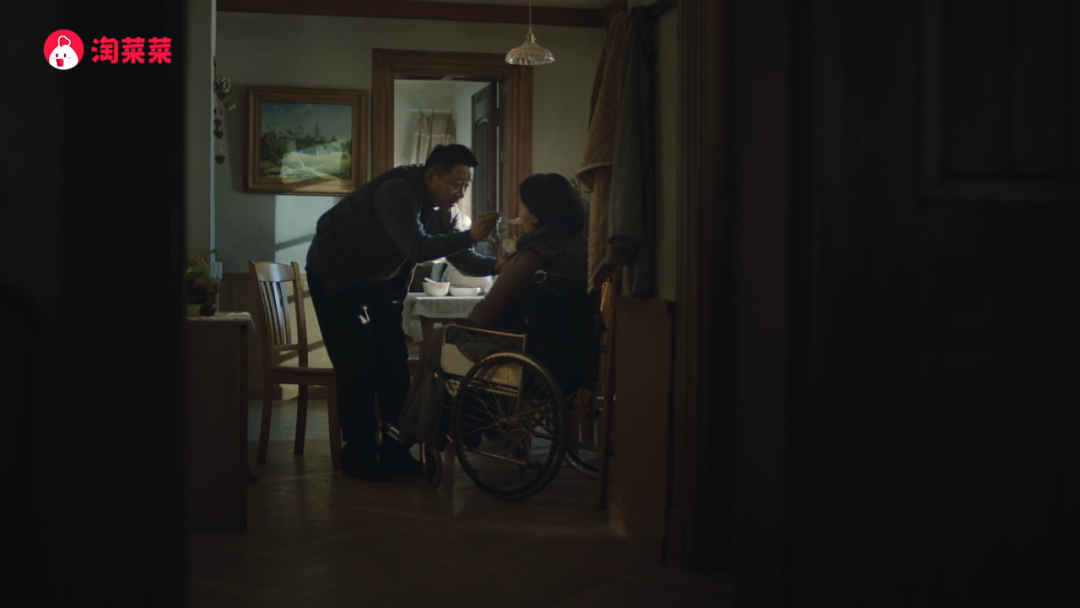 陪伴是一个老生常谈的营销主题,它被演绎得太多了,但淘菜菜显然讲出了新的故事,弱化了生硬的推广感,通过一个反向陪伴的剧情——装病,结合“回忆”闪现的情节插叙表现手法,娓娓道来最好的表白其实是日常的陪伴每天的陪伴,传递“平淡的生活中多陪伴家人”。