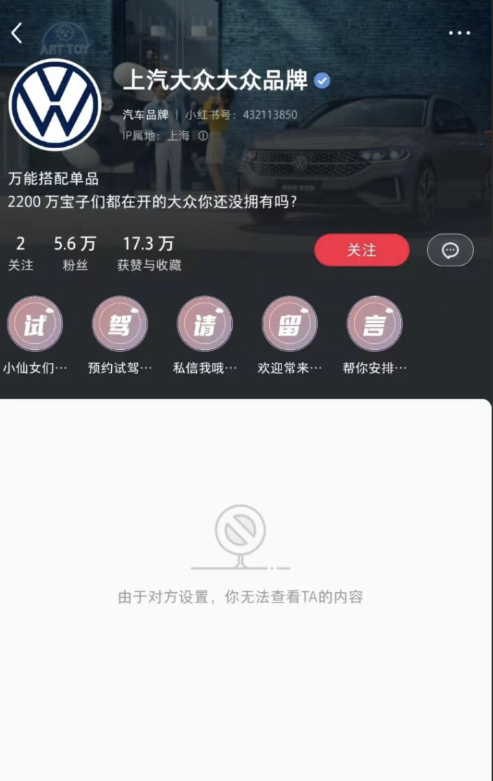 圆圆在上汽大众小红书官方账号留言、在其微博账号留言、发弹幕反馈问题,结果发现自己言论在发上去半小时就被删除,且自己也被官方账号拉黑。