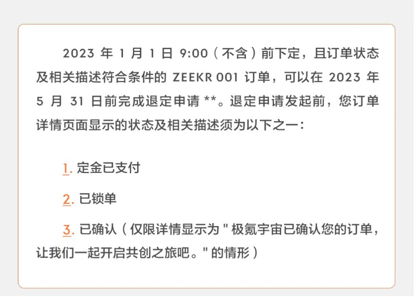 就在舒伯特已经做好诉讼准备的时候,他接到了销售的信息,表示可以申请退订了。原来是极氪最新发布了《关于2022款极氪001交付周期延长的温馨提示》公告,称2023年1月1日9点前下定的车主可以发起退订。