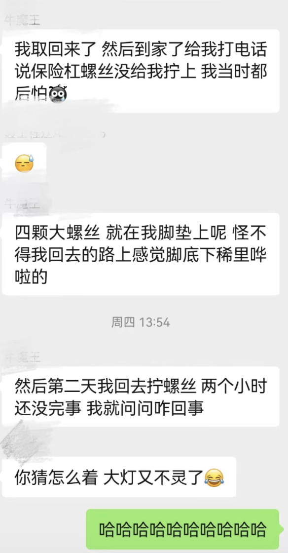 车友群上就有车友表示,自己的车拿去修,结果开回来发现保险杠的螺丝都没拧上;还有的车友因为修车时间太长,差点和售后经理打起来。