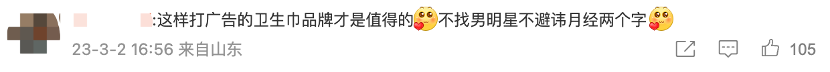 在三八妇女节这一节点,薇尔洞察大众时代情绪,通过广告片的窗口发出声音,并借代言人的影响力抢占流量高地,促成以用户共情渗透心智,向月经羞耻说不。