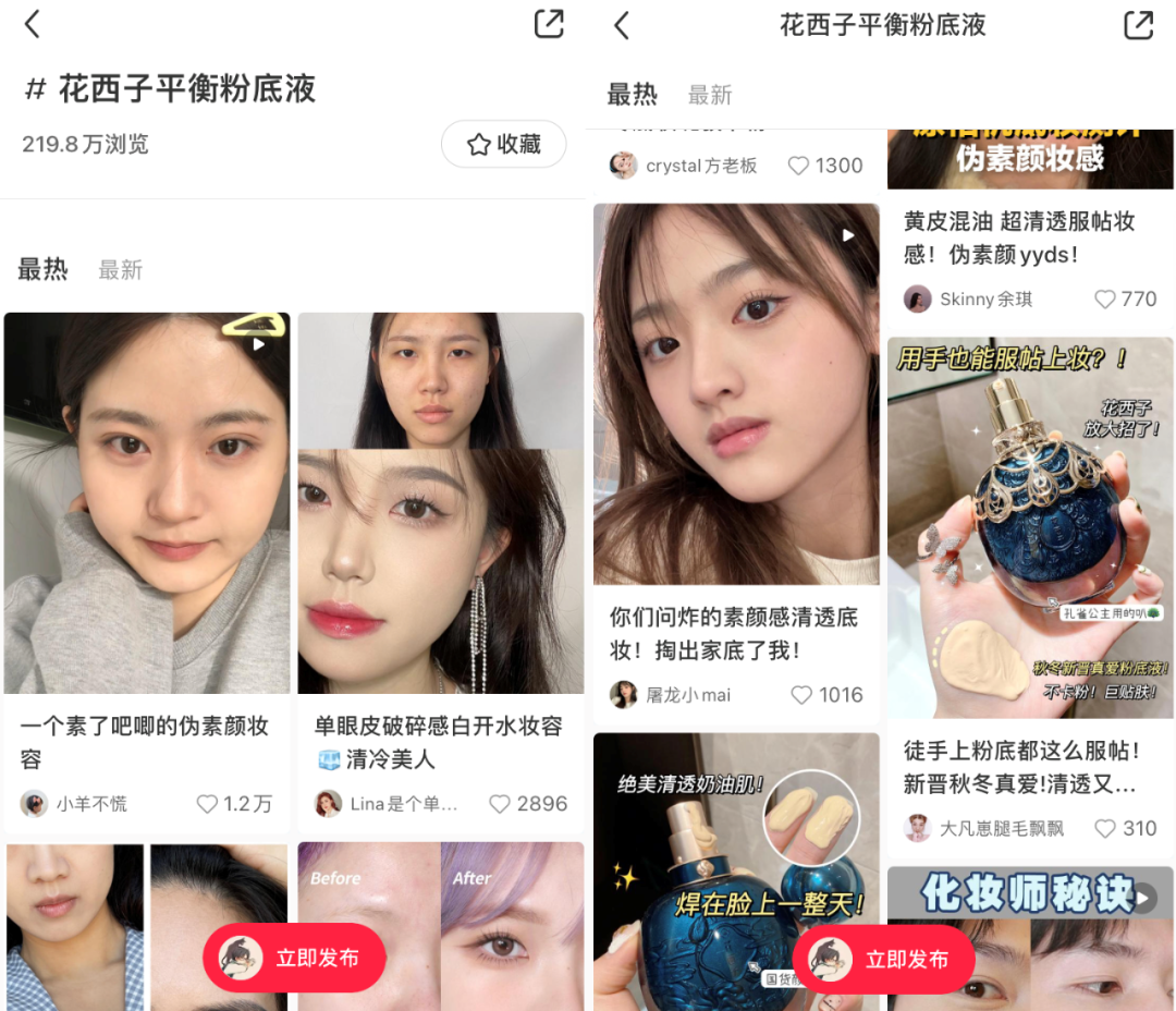 作为重度女性聚集地的小红书,在女性消费圈层拥有着强大的影响力。花西子在小红书平台发起专题活动,吸引大量KOL及素人用户自发参与,在女性圈层掀起参与热潮。