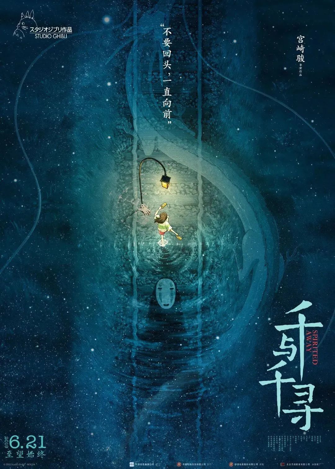 而在“望”版海报中,千寻在神隐世界的朋友“无脸男”和“白龙”默默陪伴下,重拾自信大步向前。既展现了千寻的成长蜕变,也突显了友情的珍贵和温暖。