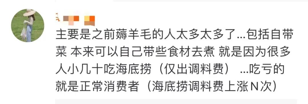 这也导致海底捞的小料费一涨再涨,很多人喜欢的牛肉粒也因为过度使用才换成了“味伴侣”,这也是其他消费者痛恨羊毛党的原因。