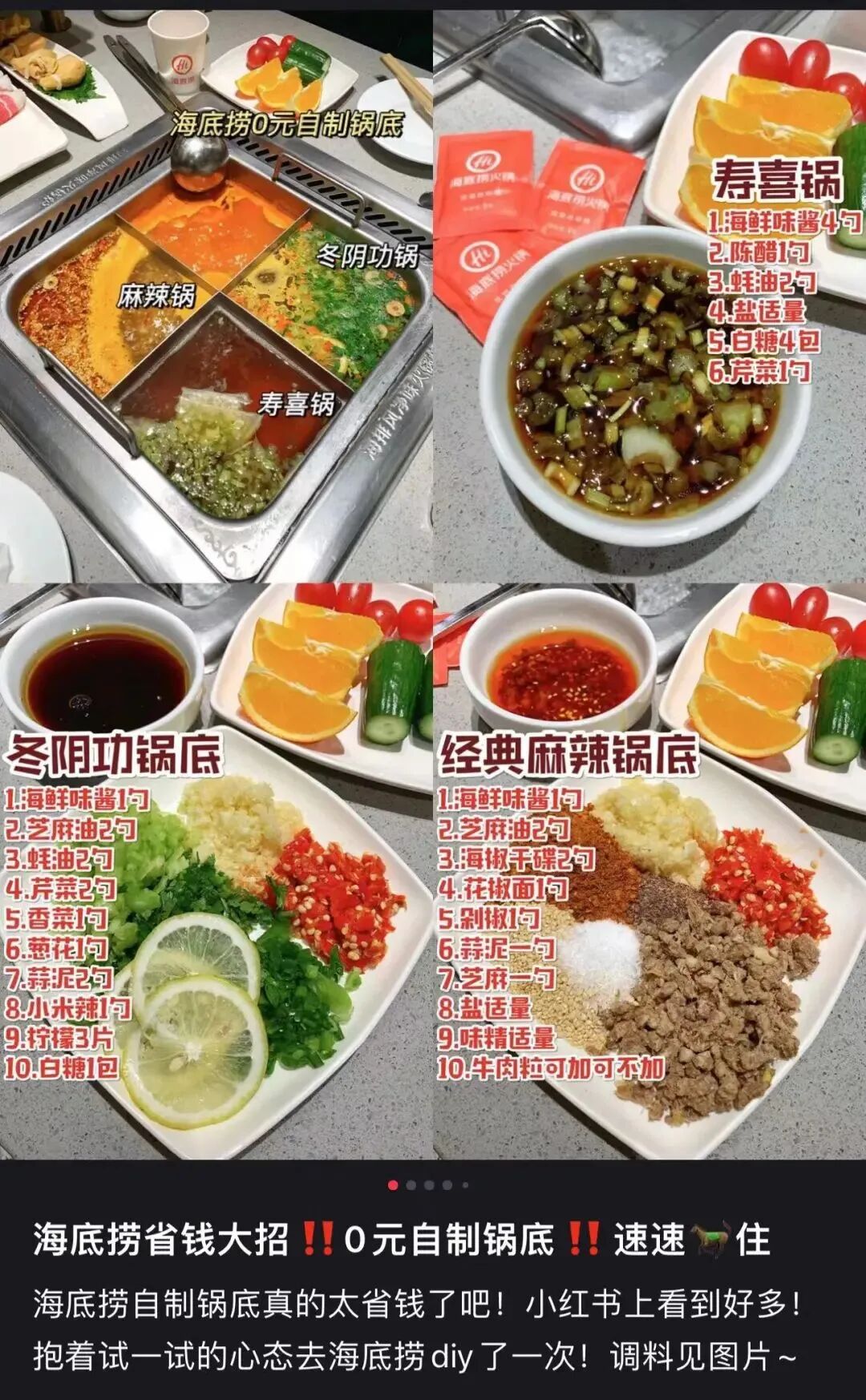 几年前,有网友晒出自己花17元吃海底捞的小票,其中包括了免费的四宫格清水锅、7元一份的捞面、10元的自选小料,用小料自制锅底,一个菜也不点,就吃各种零食、小菜、水果和捞面。