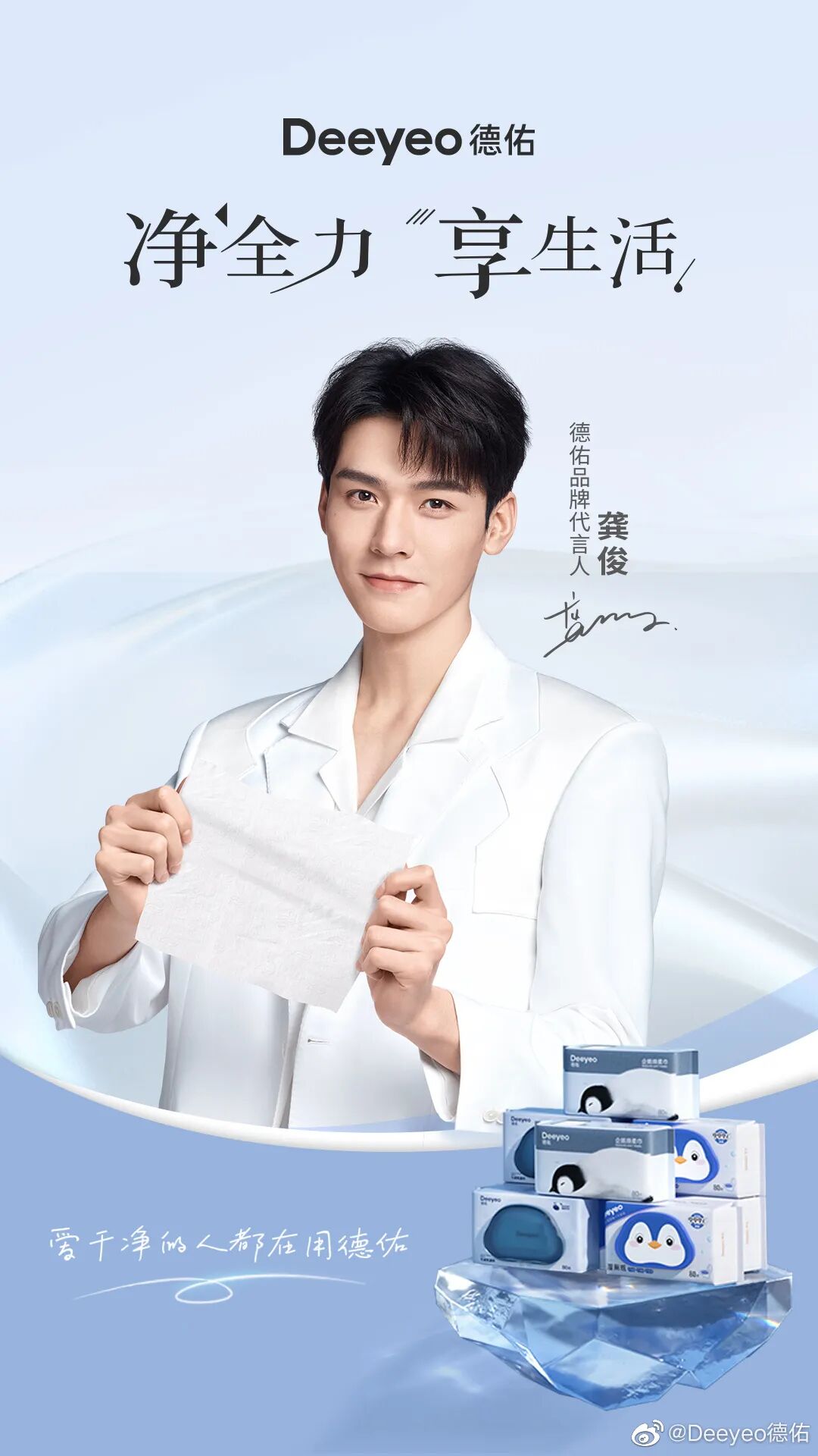 一个是新生代青年演员中的佼佼者,一个湿厕纸品类的领导者品牌,双方实力与在各自领域地位的匹配奠定了双方合作的基础。而从更深层次来说,龚俊干净、清爽的个人特质始终是留给粉丝乃至大众的印象,这与德祐始终致力于为大众提供“干净、洁净”的生活方式理念不谋而合。