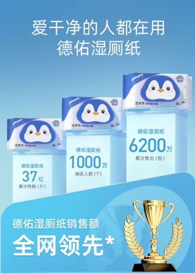 深耕一次性卫生用品的新消费品牌Deeyeo德佑作为传统厕纸的挑战者,近两年凭借在湿厕纸品类的开拓性创新以及在营销上的诸多玩法,成为行业佼佼者。