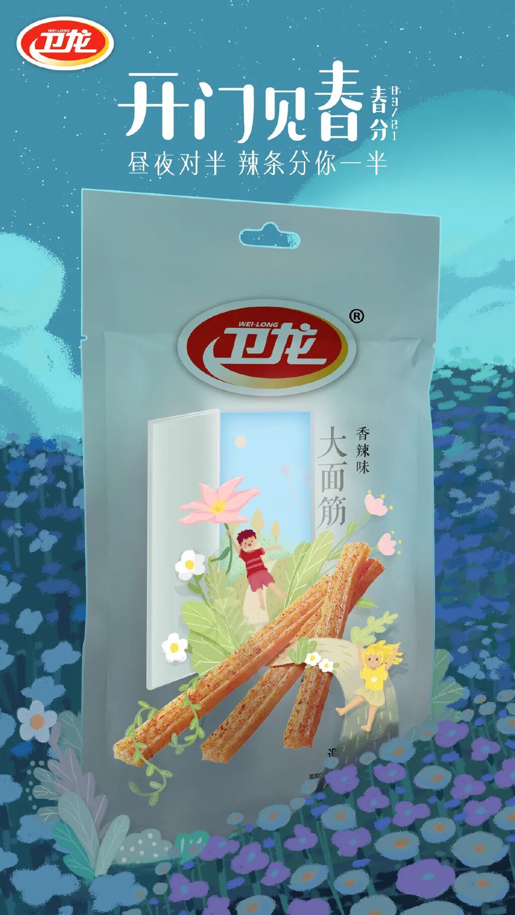 开门见春,昼夜对半,辣条分你一半。