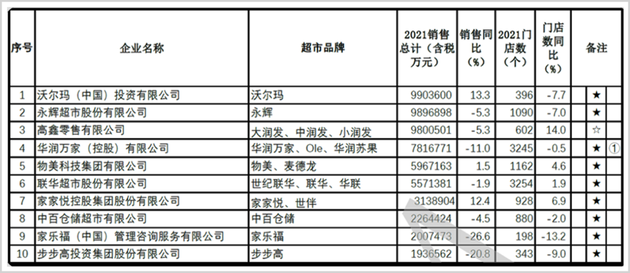 2021年永辉营业额989亿元,超过大润发、华润万家,晋升为中国本土最大商超,与沃尔玛中国也仅是伯仲之间。