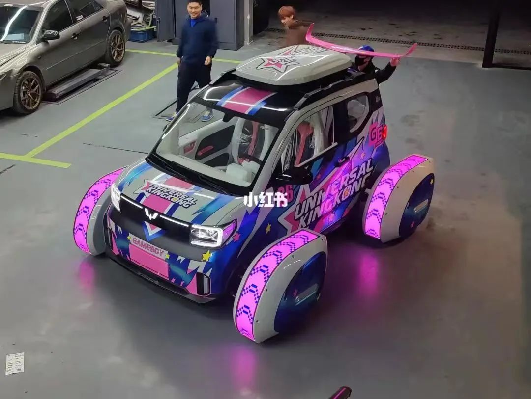 当然,作为大人手中无数不多的可以DIY的“玩具”。五菱宏光mini的改造之路从来没有尽头!女孩子们看过来,baby蓝+粉红配色,软妹没有不爱的吧?
