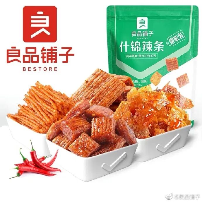 比如从2019年到2022年,卫龙的销售费用就从2.8亿元,增长到了6.3亿元,占营收的比重也从8.3%上升到了13.7%。尤其是在2022年,卫龙的经销及销售费用对比上一年,更是增加了1.1亿元左右,其中光是推广和广告费用就增加了6000万左右。所以综合这两项来看,品牌营销费用的增加,最终的买单者无疑都落在了消费者身上。更重要的是,卫龙转嫁成本压力的做法,对于部分消费者来说,尤其是那些对价格比较敏感的消费者,在一定程度上还是产生了一定的抑制作用。特别是对卫龙的辣条影响最为明显,资料显示,卫龙辣条的营收从2021年同期的29.18亿元减少6.8%至27.19亿元。而辣条又恰恰正是卫龙的绝对支柱,所以过度依赖辣条业务带来的风险,随着销售的下滑也会直接反映在财报上。更何况,现在的辣条消费市场,可供选择的品牌也不止卫龙一家。就像在“90后最爱吃的辣条大盘点”的话题下,良品铺子、佳龙、源式、百草味、麻辣王子、卫龙、KK星等也都是推荐榜上的常客。▶ 图源:良品铺子微博
