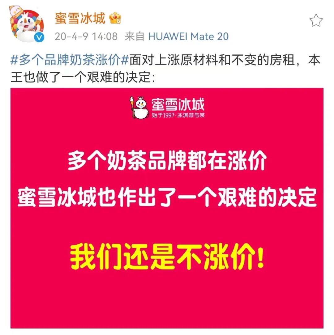 小马去了解了一下,蜜雪的供应商是自己,目前有能力控制成本。而且,雪王的营销一直都很到位,当初就算多个品牌奶茶涨价,也始终坚持初心,拉了一波又一波好感。