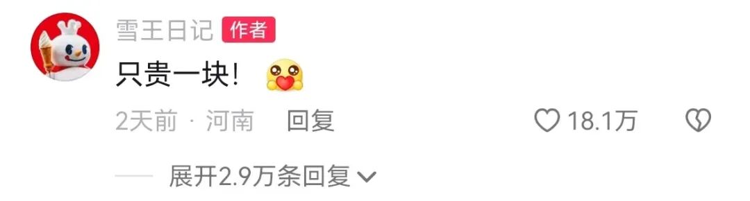 回答:只贵一块!这打动人的四个字,雪王依旧是那个雪王,把低价营销用到了极致。