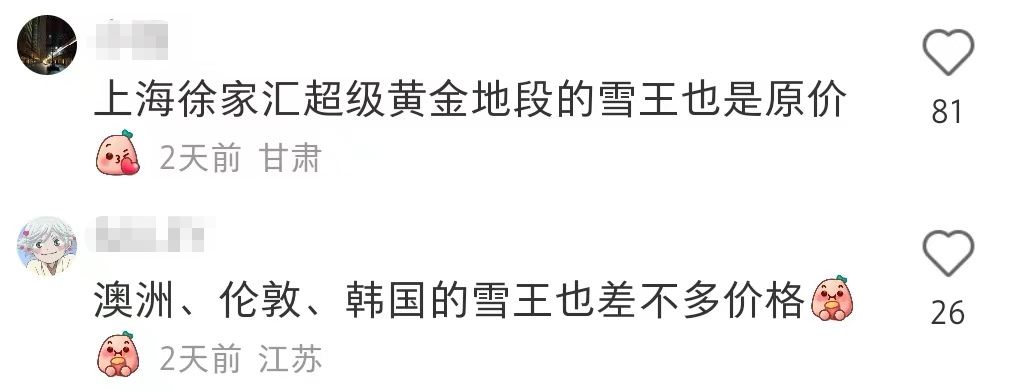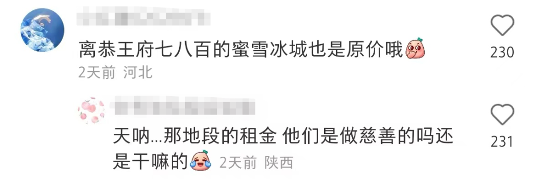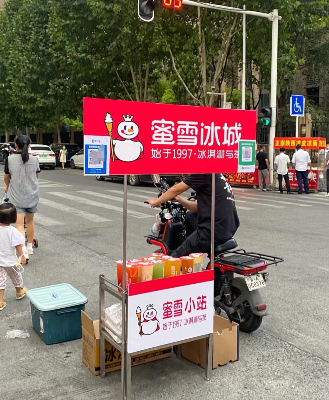 蜜雪冰城不止在泰山顶坚持“低价”,还在多个黄金地段开店,并以原价售卖饮品。