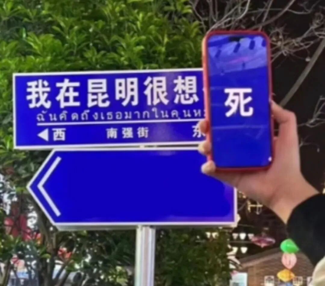 商家收获了流量,路人却越来越不买帐,于是大家开始反击、开始摆烂、终于,网红路牌的反骨们出现了!他们利用手机或ps玩起了创意,网红路牌已经被网友们“玩坏”了。当代叛逆年轻人,浑身都是反骨,你可以看到各个城市版本的“很想死”......好家伙,《狂飙》里高启强和陈书婷的热度,被你们蹭到了。