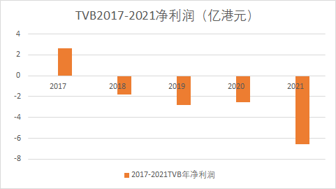 在2016年的净利润断崖式下跌之后,从2018到2022年,TVB持续亏损累计超过16亿元(港币,下同),2022年全年更是亏损8.07亿元,运营成本远超收入。
