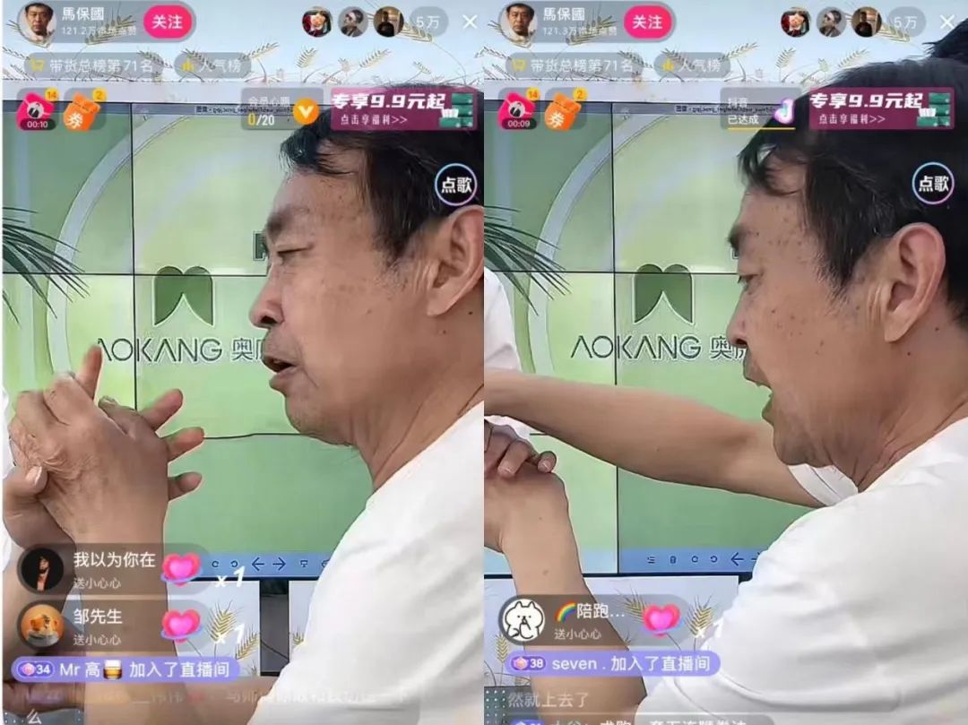 4月1日,时隔两年重返互联网的马保国在抖音开启了直播带货,一边讲解卖货“少喝一瓶酒,买个十件、二十件衣服”“57%的大米,26%的虾肉”;一边讲述自己曾经的武打经历,“我在英国的时候,二百多斤的大理石都弄不动我”,说到激情处还要现场演绎一下,找来直播间一个有劲儿的小伙子开始比划。