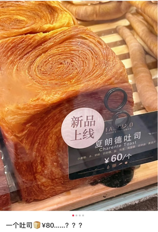 最近两年,社交平台上关于面包价格的讨论开始变多,随便点进笔记会发现,吐槽价格贵、分量小的内容占多数。原本只是早餐或下午茶充饥用的面包茶点,现在摇身一变成了“轻奢货”。当烘焙市场挥起乱拳时不少职场人发现,早餐成本开始越变越高,甚至比一顿正餐还要贵。