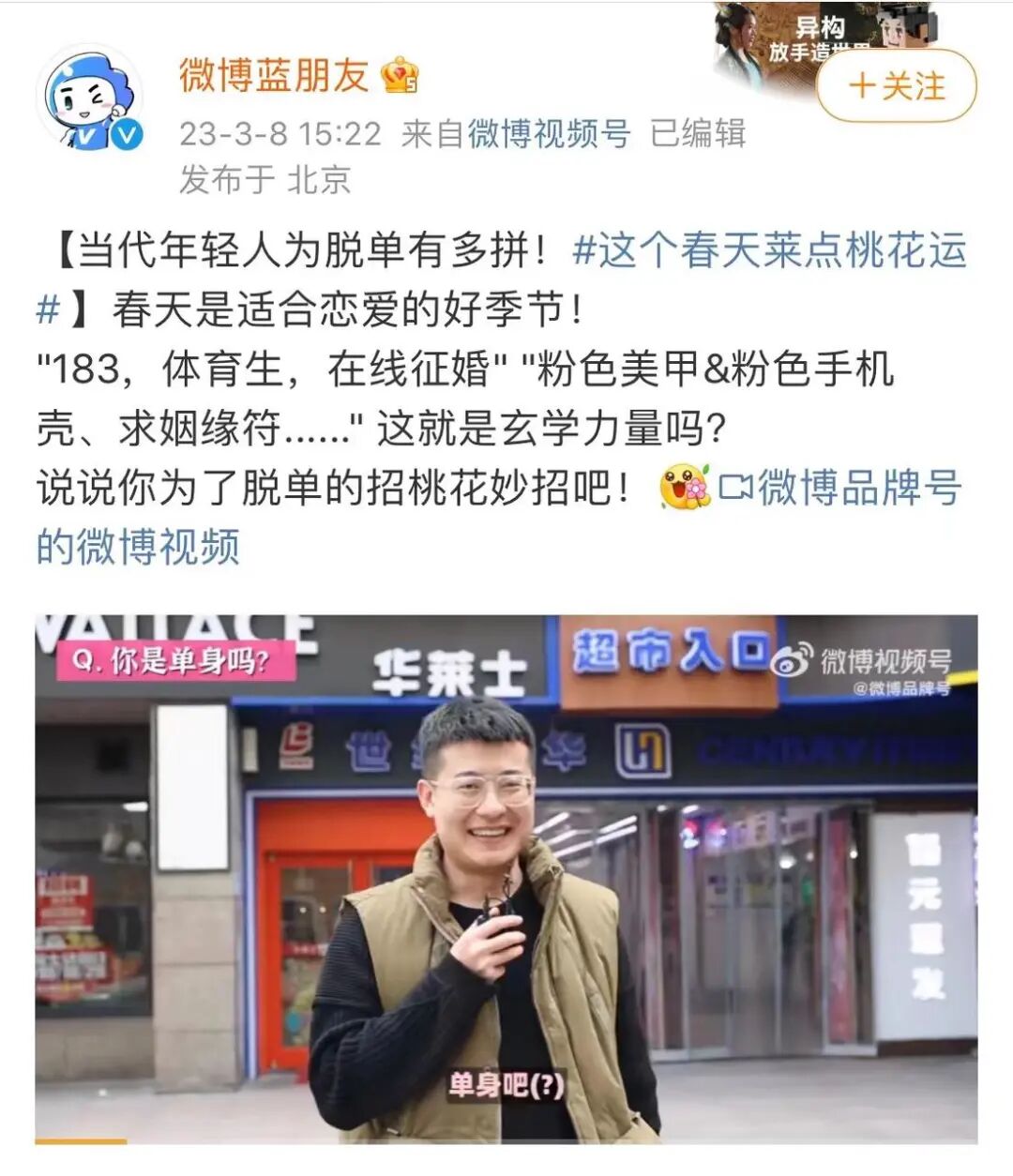 这不,最近微博上一个研究年轻人脱单大法的街采视频引起不少关注。