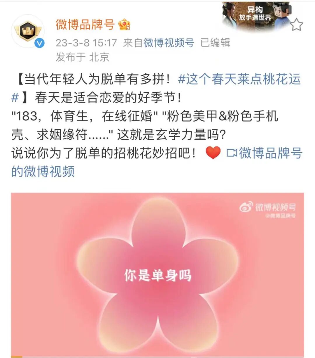 在建立“桃花运”和品牌的联想之前,要渲染“桃花”的讨论氛围,将目标群体吸引到品牌的沟通语境中去。