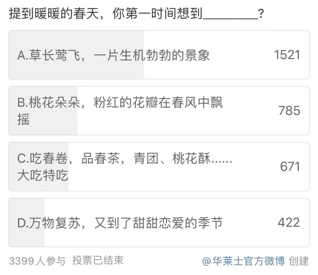 官博率先发起趣味投票,引导用户关注桃花运话题、桃花类美食,互动人数超过3000。