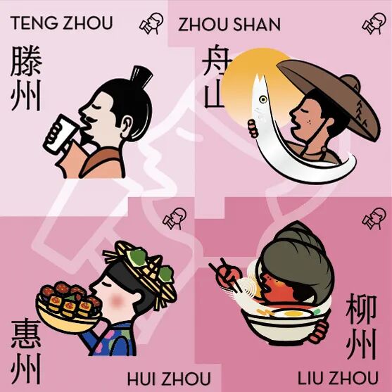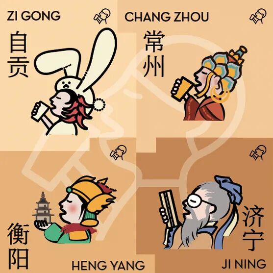 暴露吃货本性:广东“喝早茶”,柳州“嗦螺蛳粉”、青岛“干啤酒”。除此之外,还有深圳“摸鱼”,广州“羊城”,淮安“吴承恩”。你可以永远相信喜茶的课代表,为你科普喜茶系列的冰箱贴设计元素。