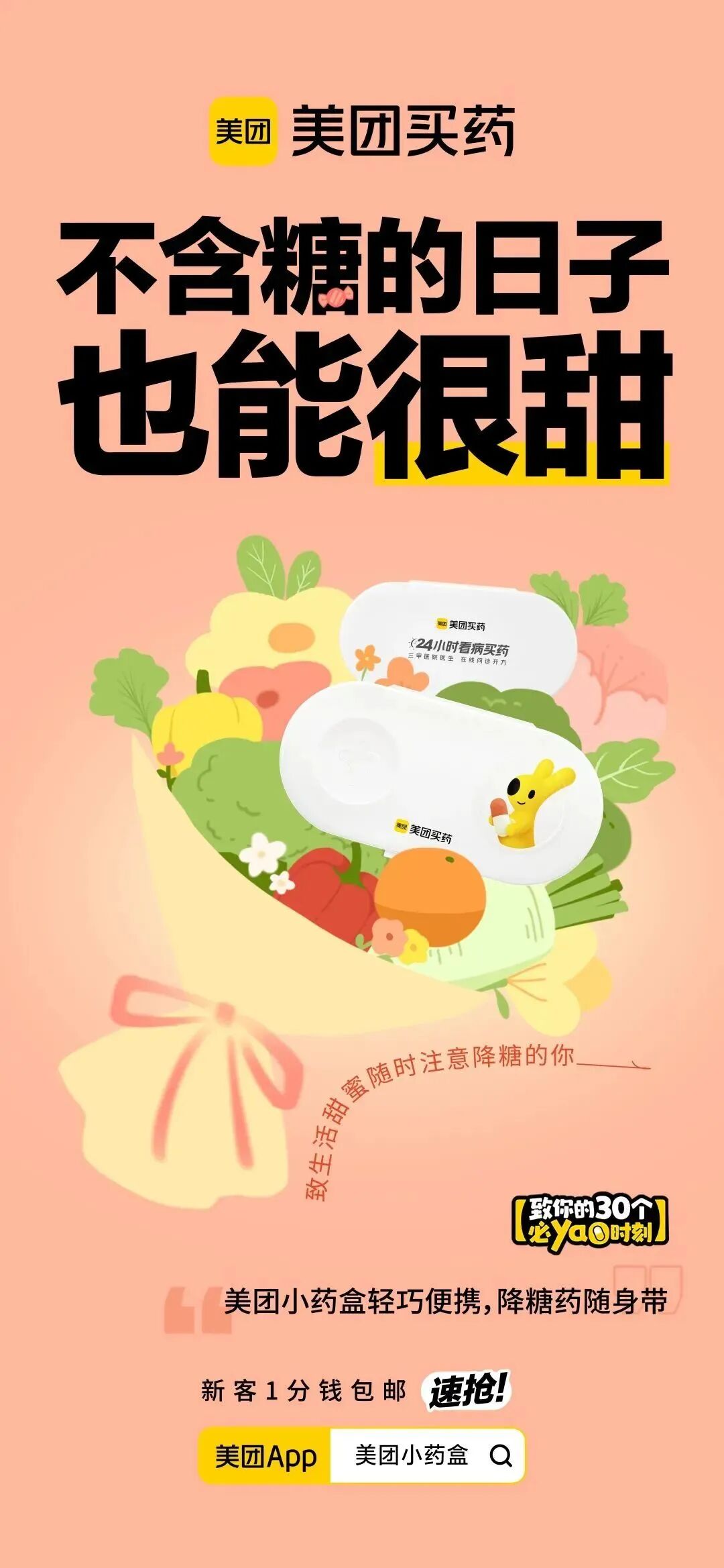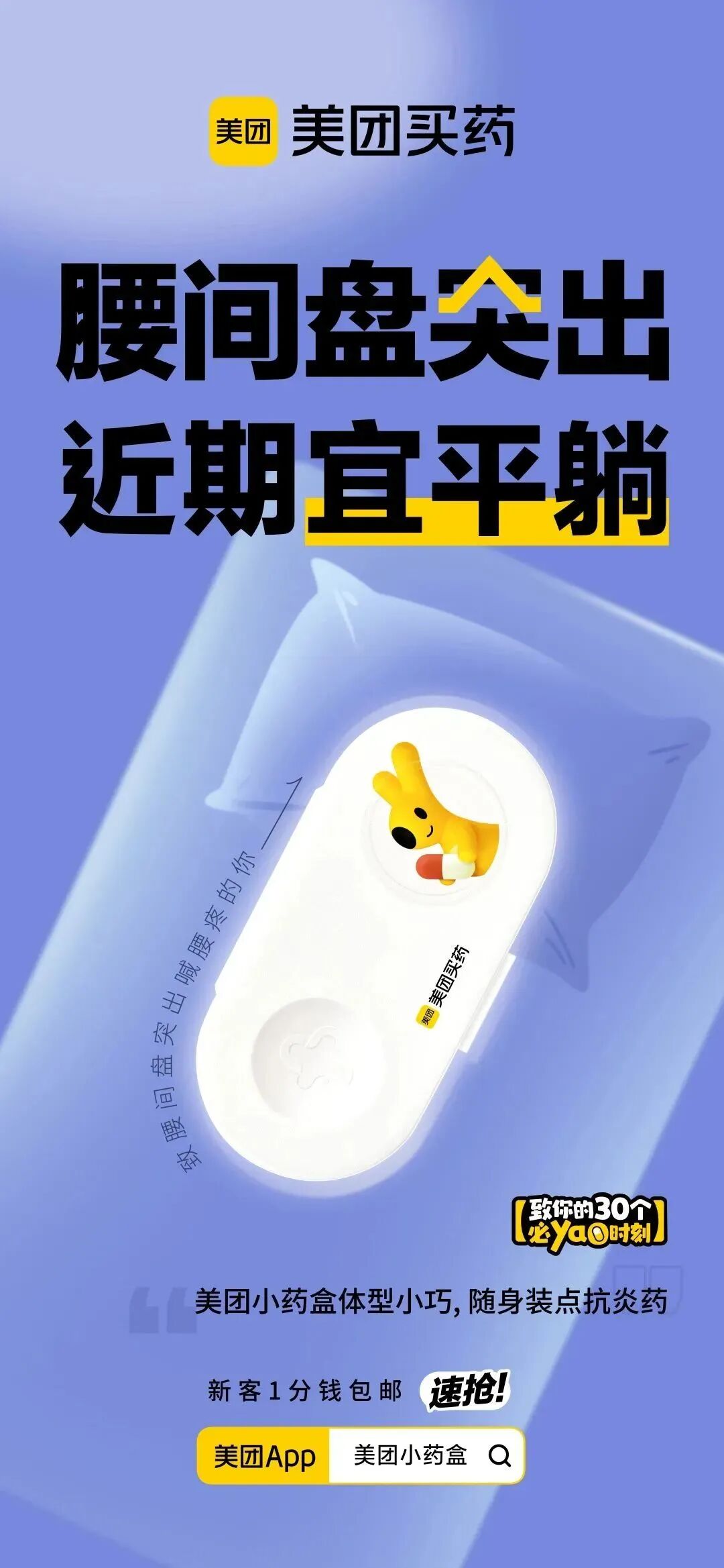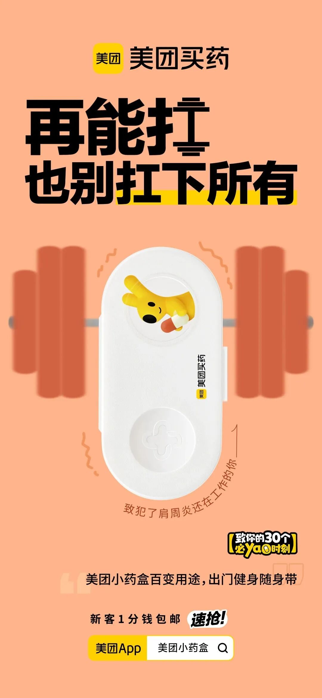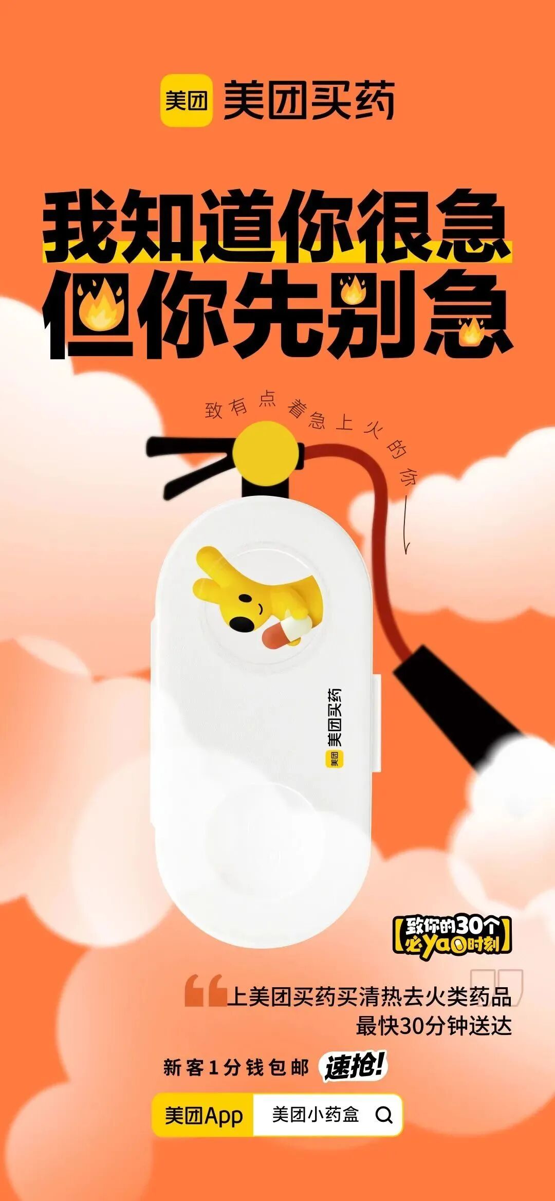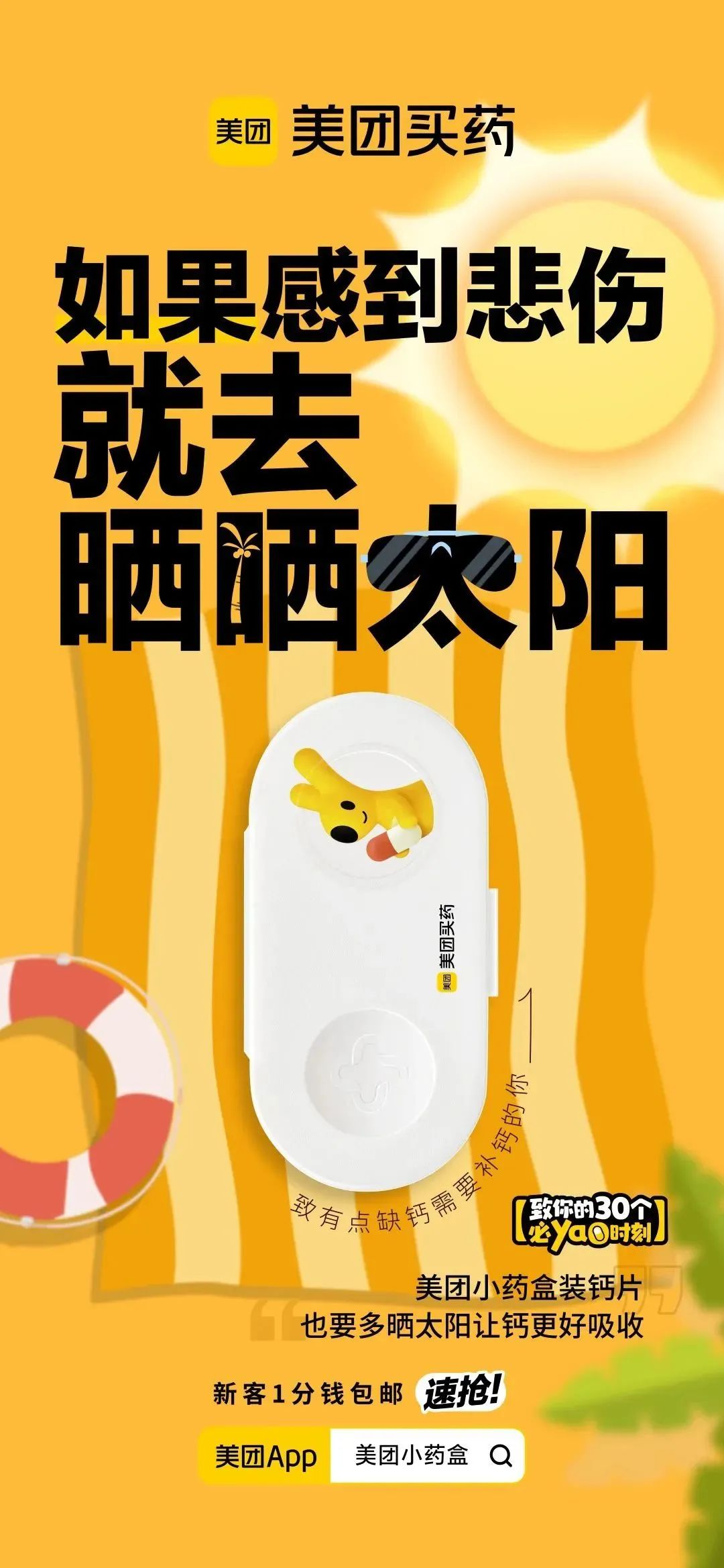 看完这组海报,太惊艳于美团的洞察了,整组广告文案都围绕生病时的情绪来展开,幽默中带着一种积极乐观的心态。