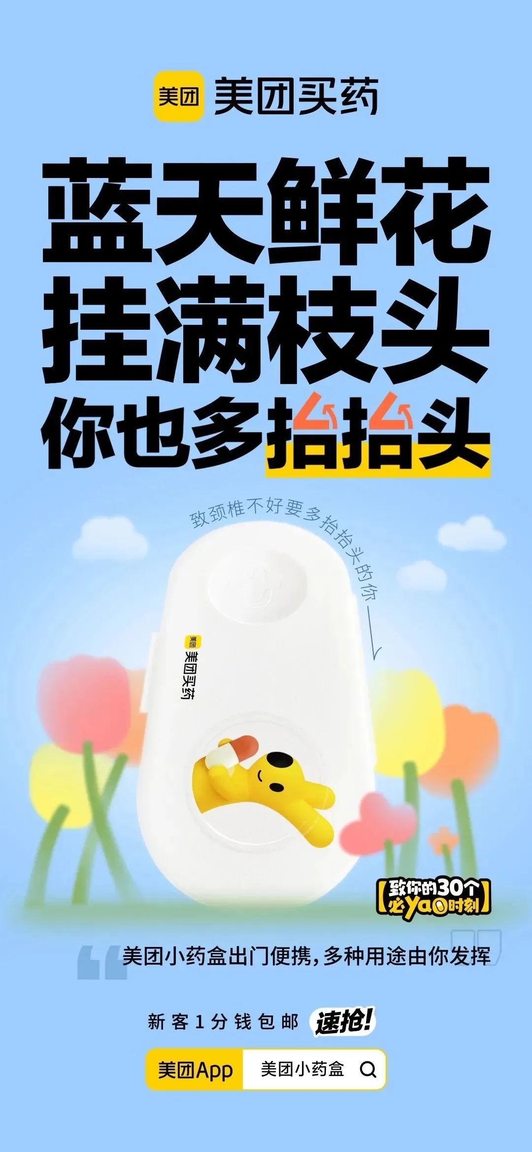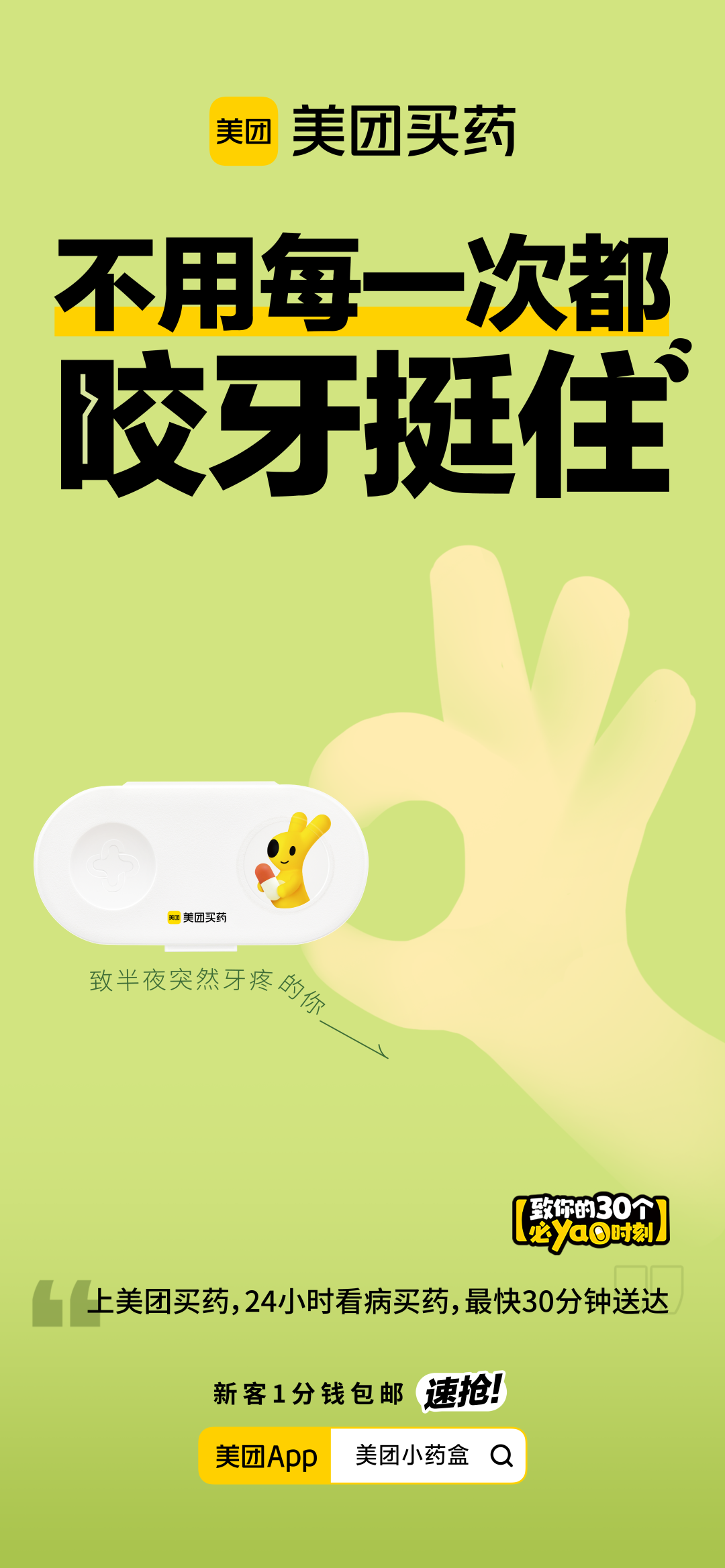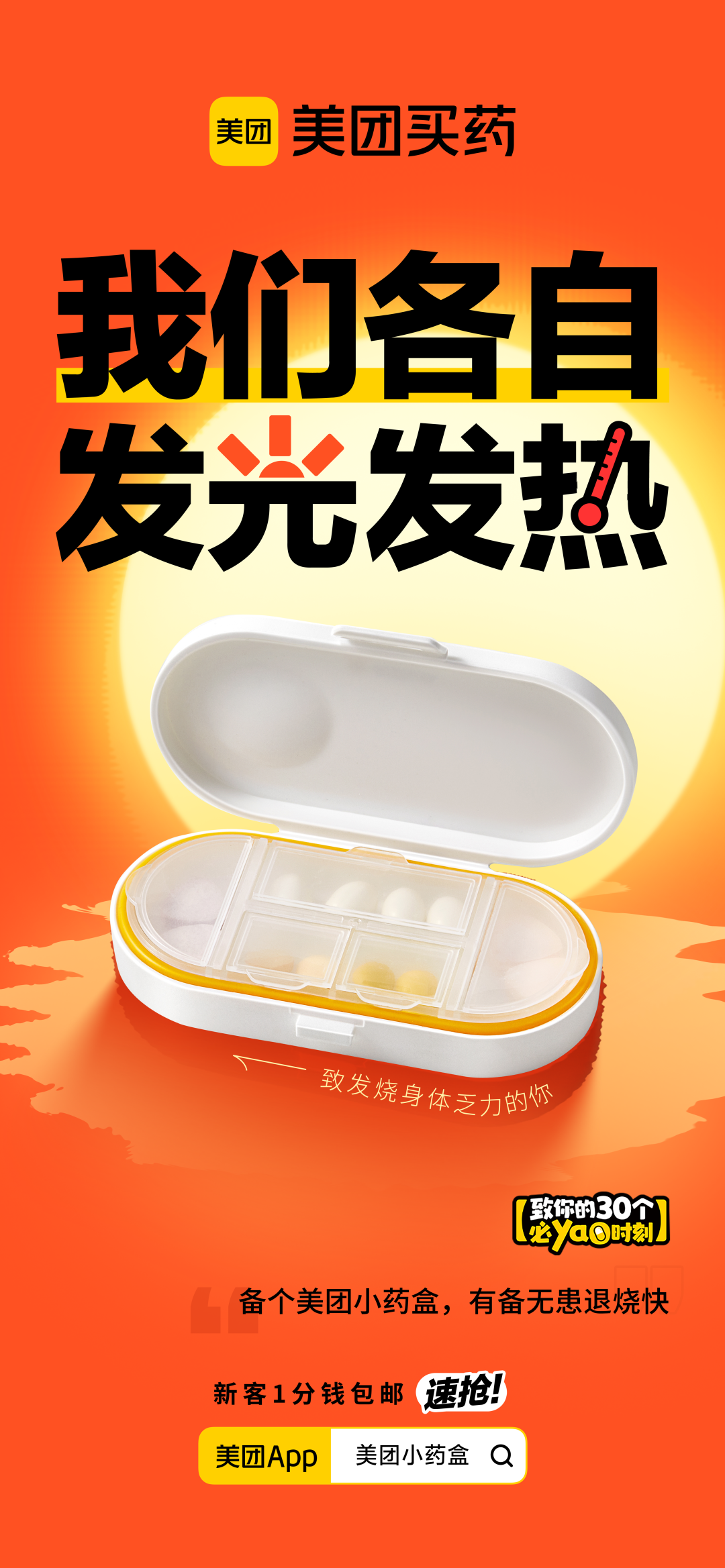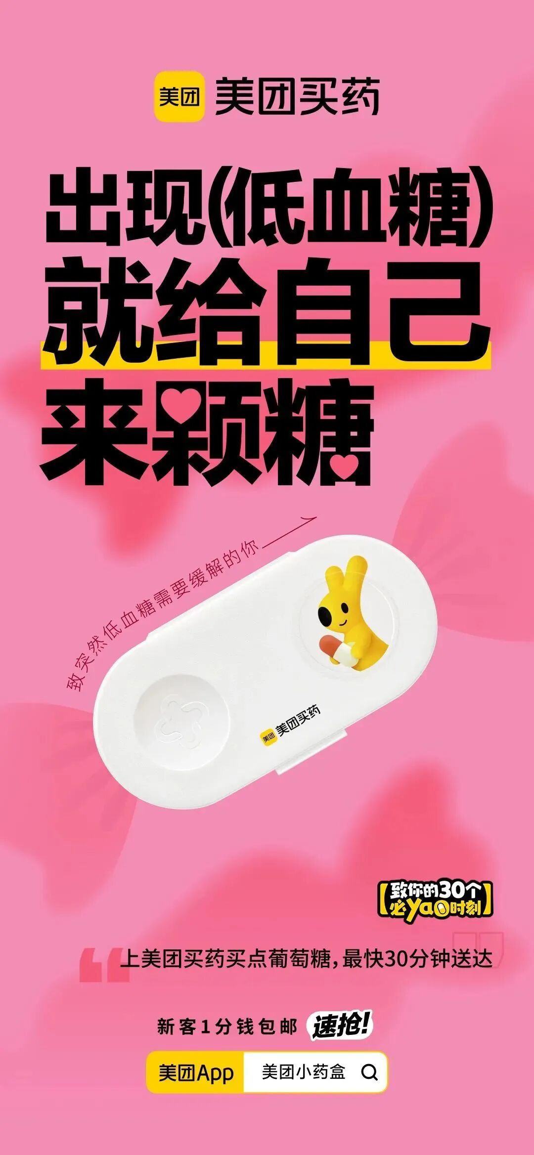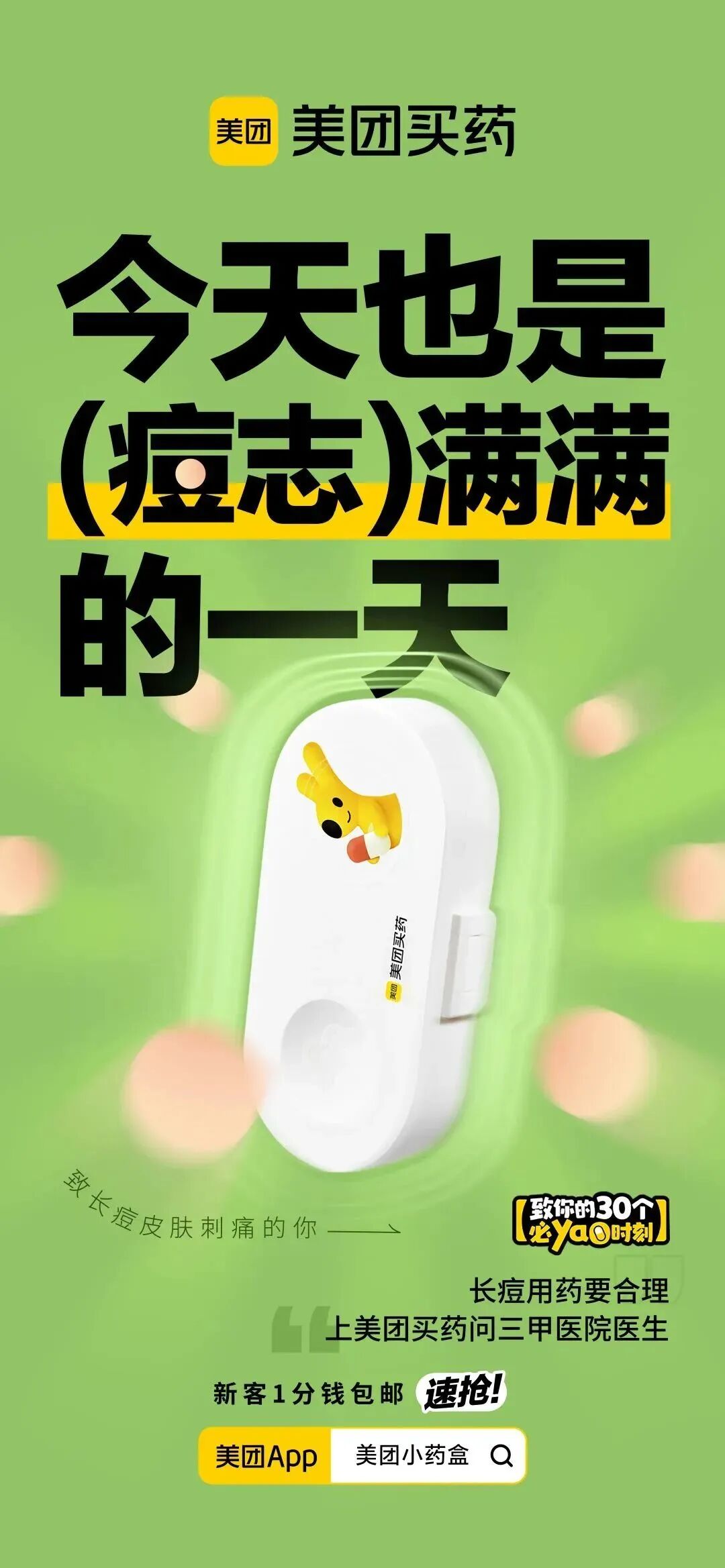 看完这组海报,太惊艳于美团的洞察了,整组广告文案都围绕生病时的情绪来展开,幽默中带着一种积极乐观的心态。