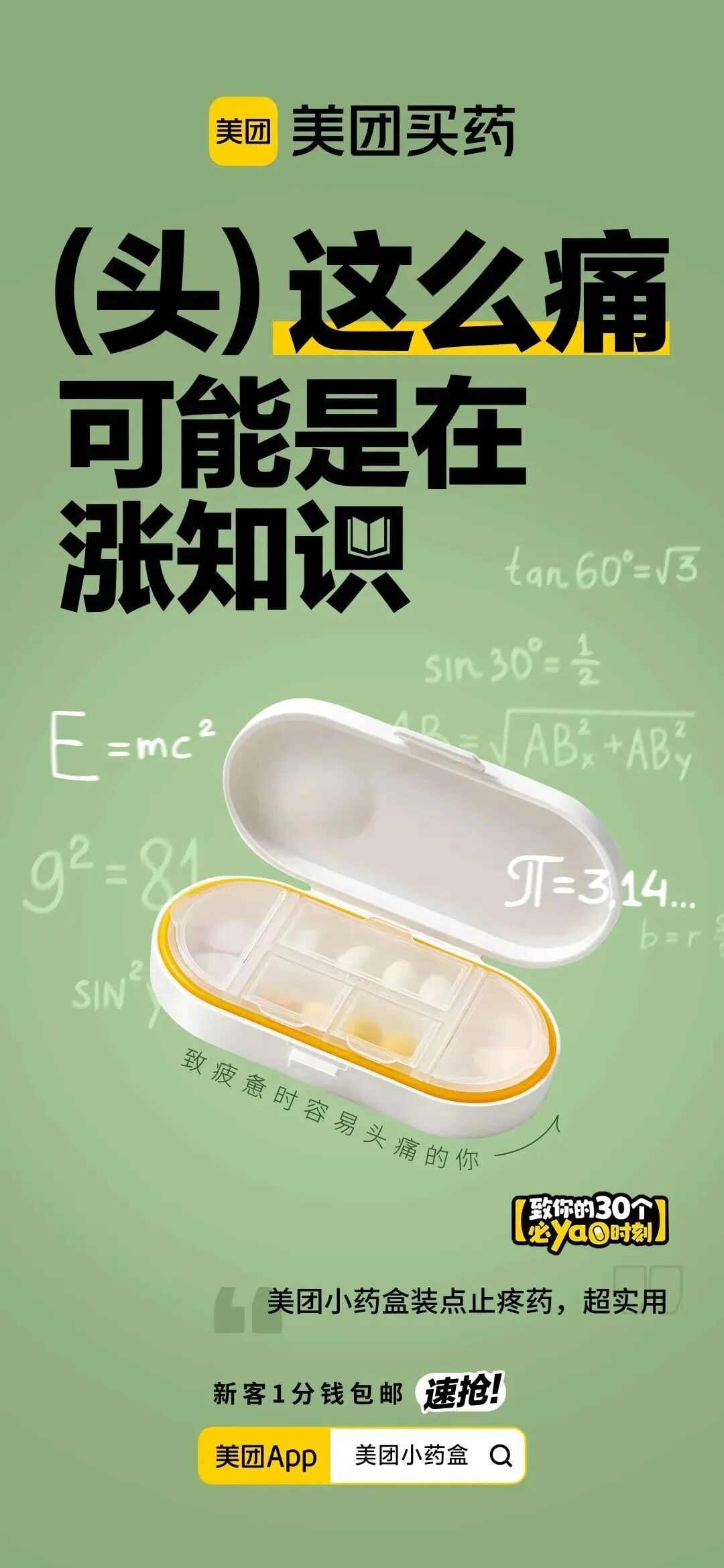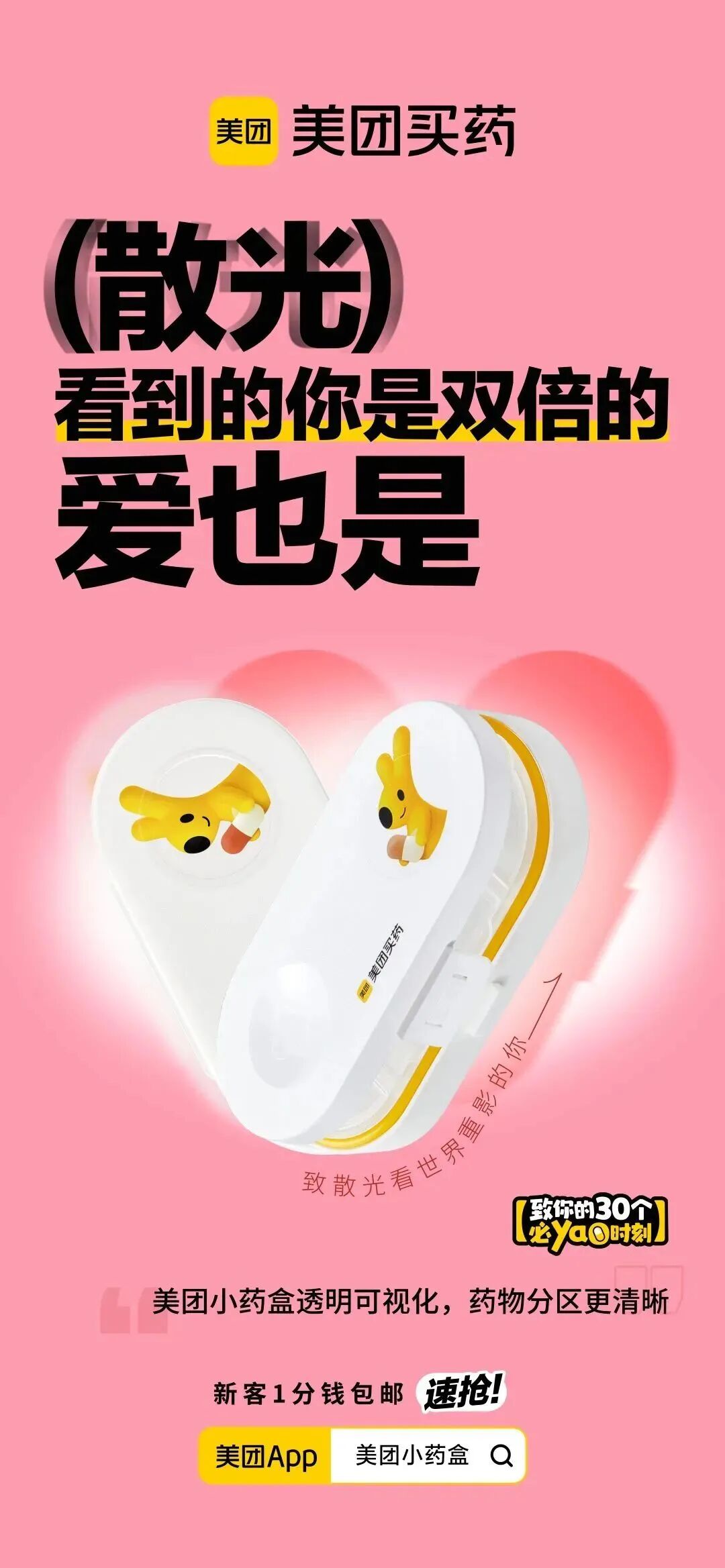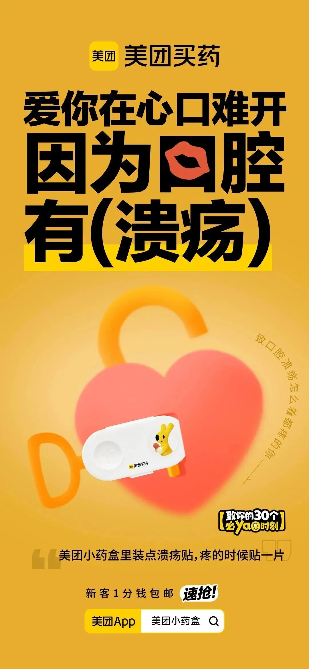 真的喜欢,这组广告的切入点,如果说早些年999感冒灵走的是共情策略,那么美团买药这组文案则将这种共情更加细腻化。