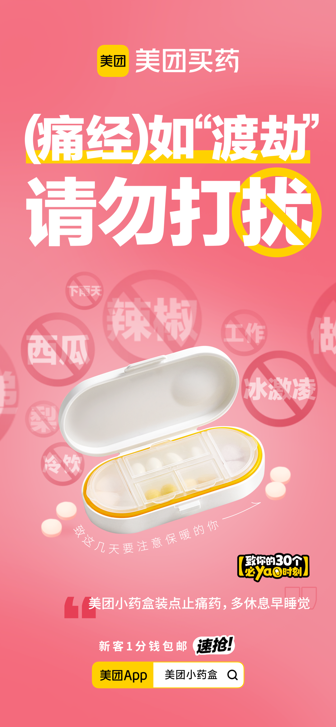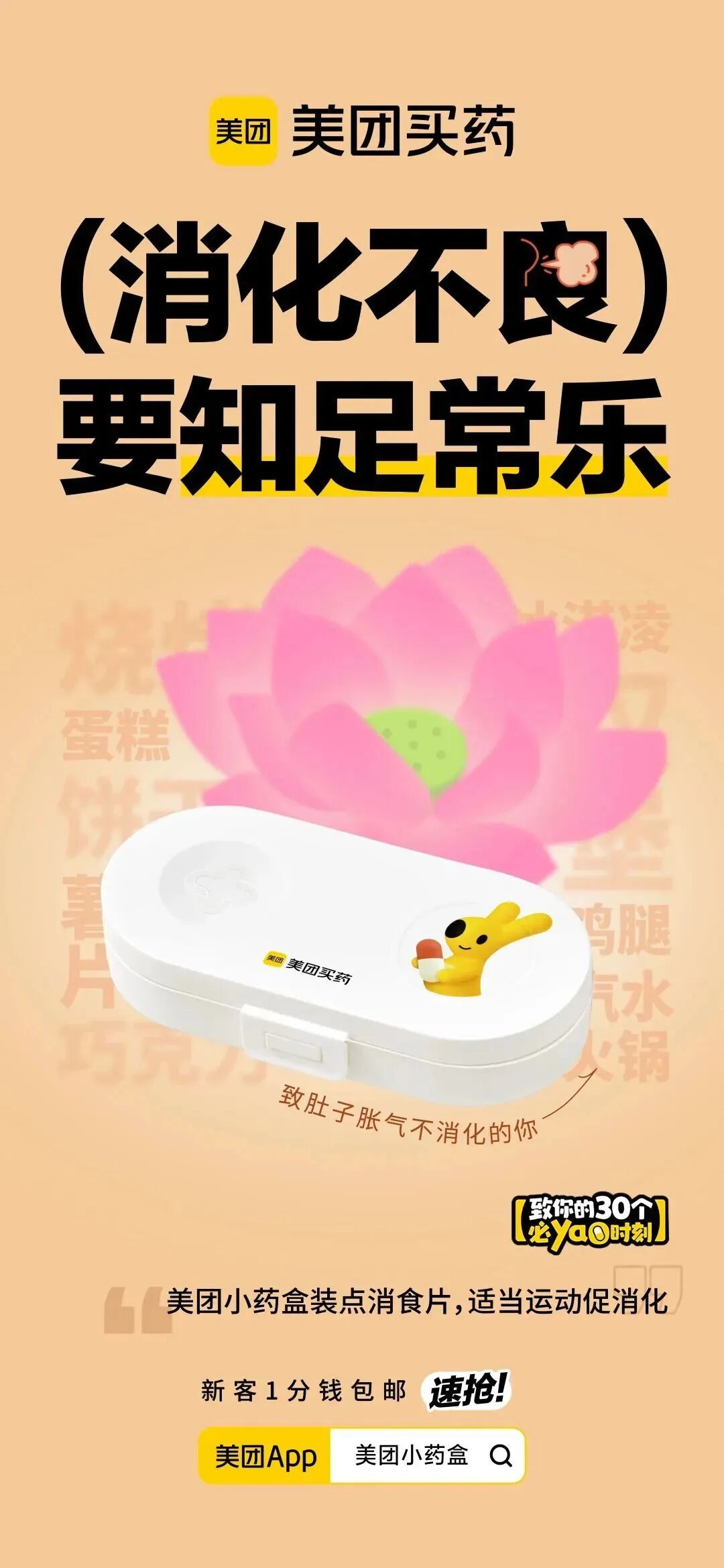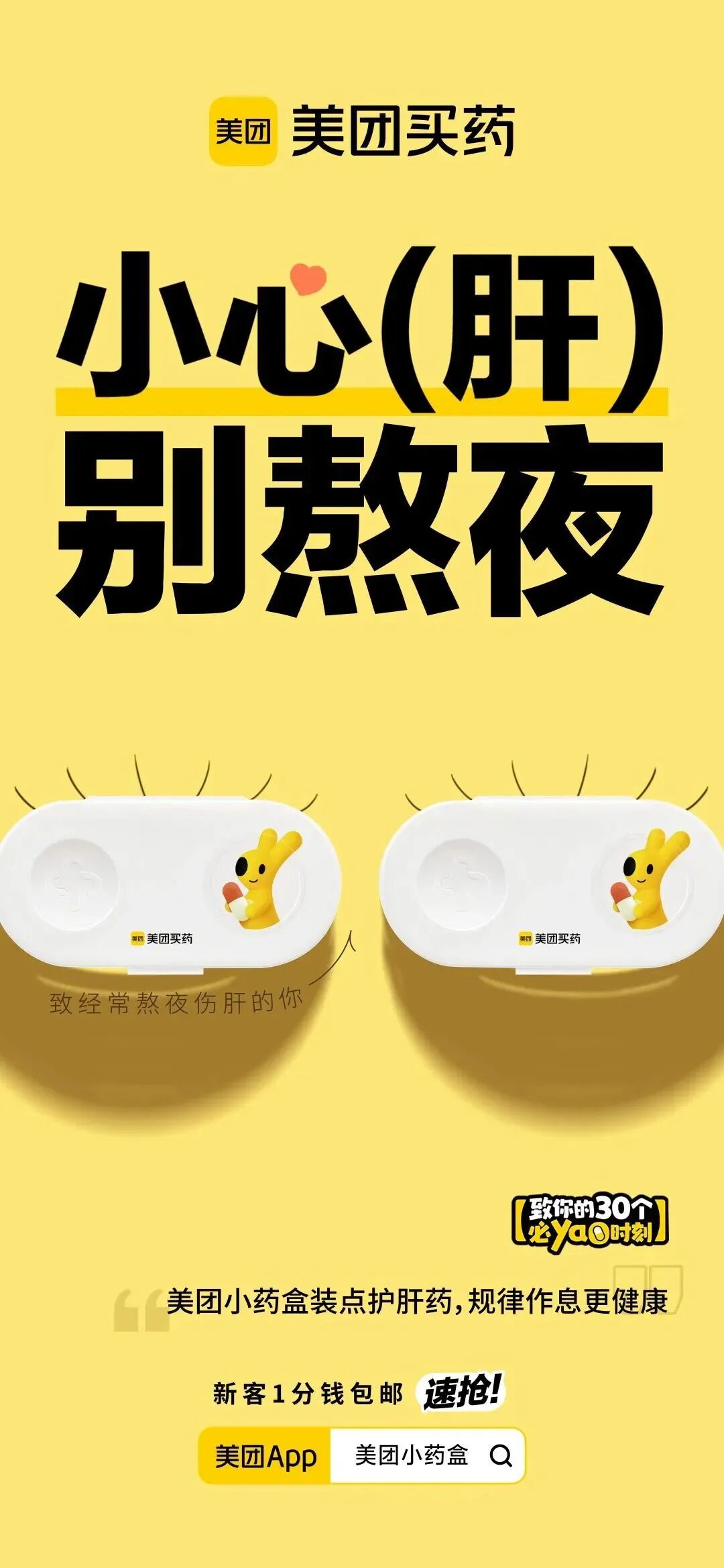 真的喜欢,这组广告的切入点,如果说早些年999感冒灵走的是共情策略,那么美团买药这组文案则将这种共情更加细腻化。