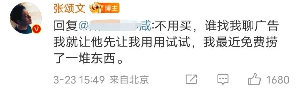 而在此之前,张颂文就表示:谁找他聊广告,都会让对方先把东西拿给他试用。可以大胆推断,3月份的时候,小米已经联系张颂文谈合作了,随后张颂文开始试用小米,直到昨天正式官宣,小米终于度过了试用期、观察期,正式转正,这也从侧面证明了小米的品质得到了张颂文由衷的认可。