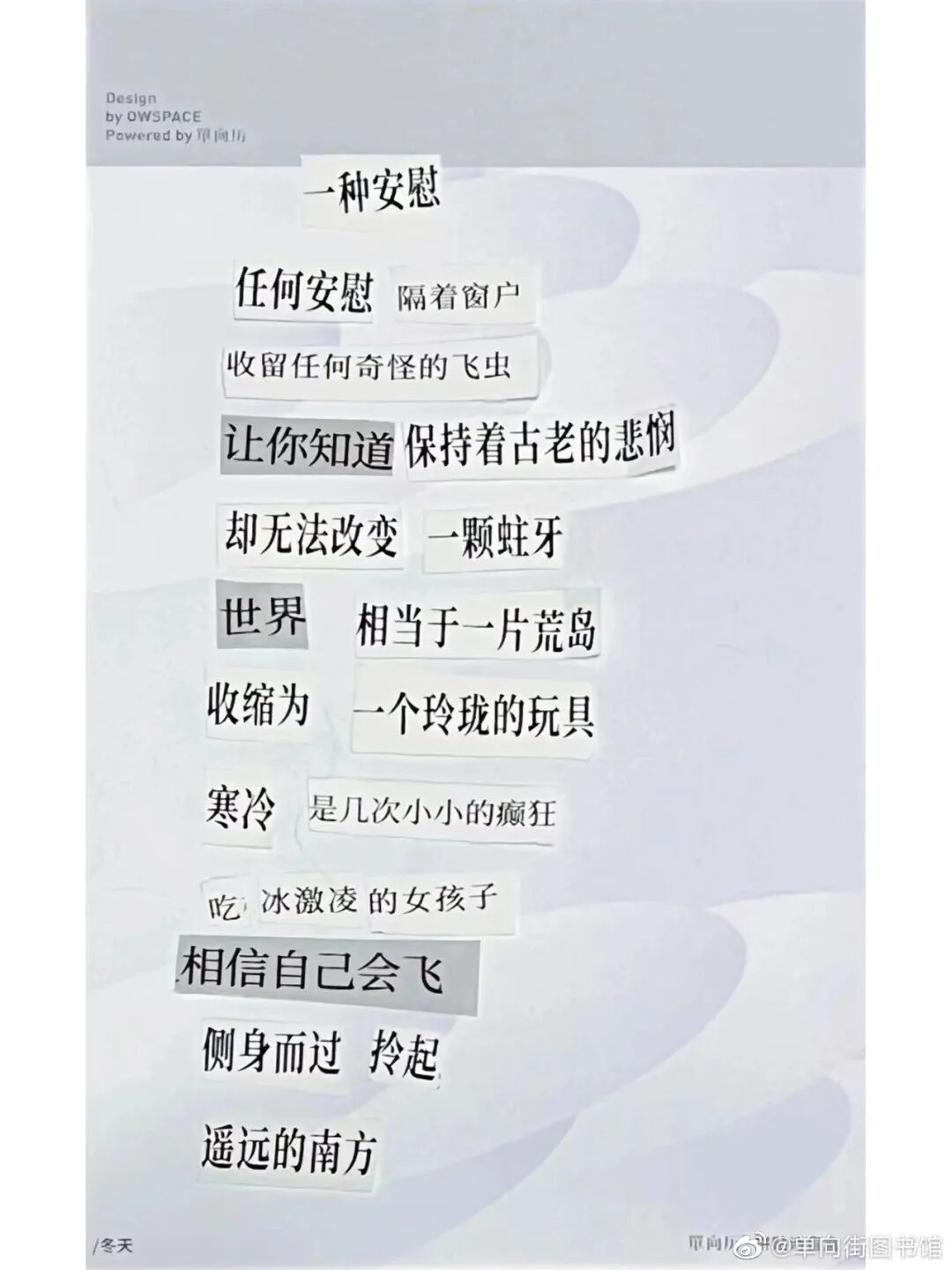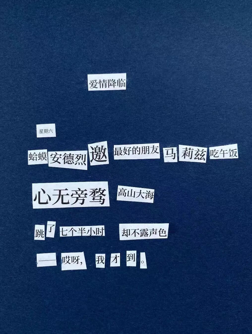 不知何时起,拼贴诗的风潮兴起。无数野生诗人们带着自己的新鲜创作攻占赛博空间。拥有三万多名赛博诗人的豆瓣拼贴诗小组,简介写着“当代诗人,就是我们”。