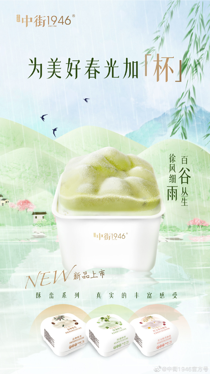 雨生百谷,万象更新。中街1946新品杯装冰淇淋,满载春日新意上市!