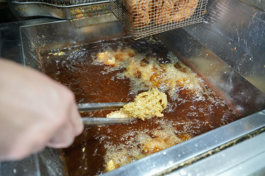 炸鸡并不比干工程容易,刚开业的时候,刘金鹏每天需要在店里从早上10点待到凌晨2点。炸鸡的定价是25块钱一份,没想到在县里销路很好,刚开业时,一天能卖出去80份炸鸡。