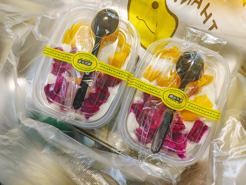 在张家港跑外卖时,常志法经常能接到果切的订单,水果被洗好、切好,装在一个小盒子里,附赠牙签,客人打开就能吃。有时是同一种水果,有时是几种水果拼到一起,或是在水果块里加上酸奶变成水果捞。