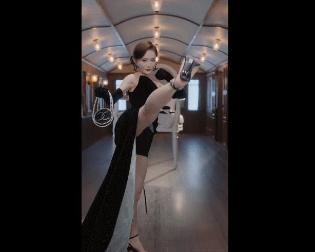 再cos个椰树徐冬冬的标志性动作,将徐冬冬原本的白色紧身衣服,变黑色高定,瞬间高级。