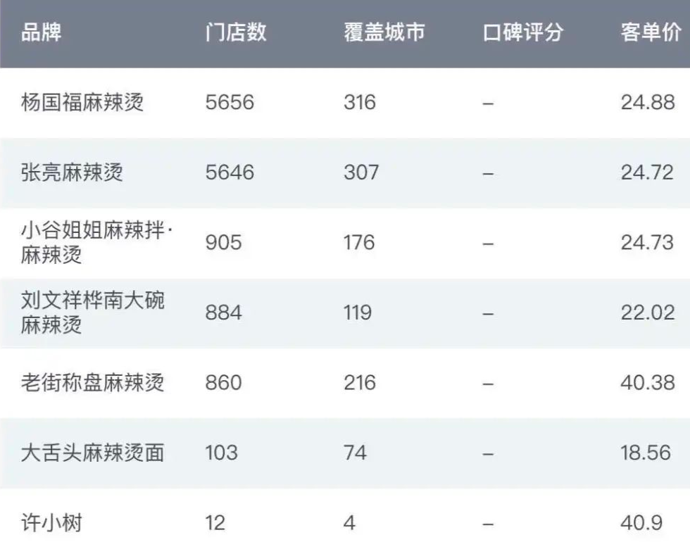 大舌头麻辣烫面和许小树的门店数量则少了许多,分别仅为103家和12家。