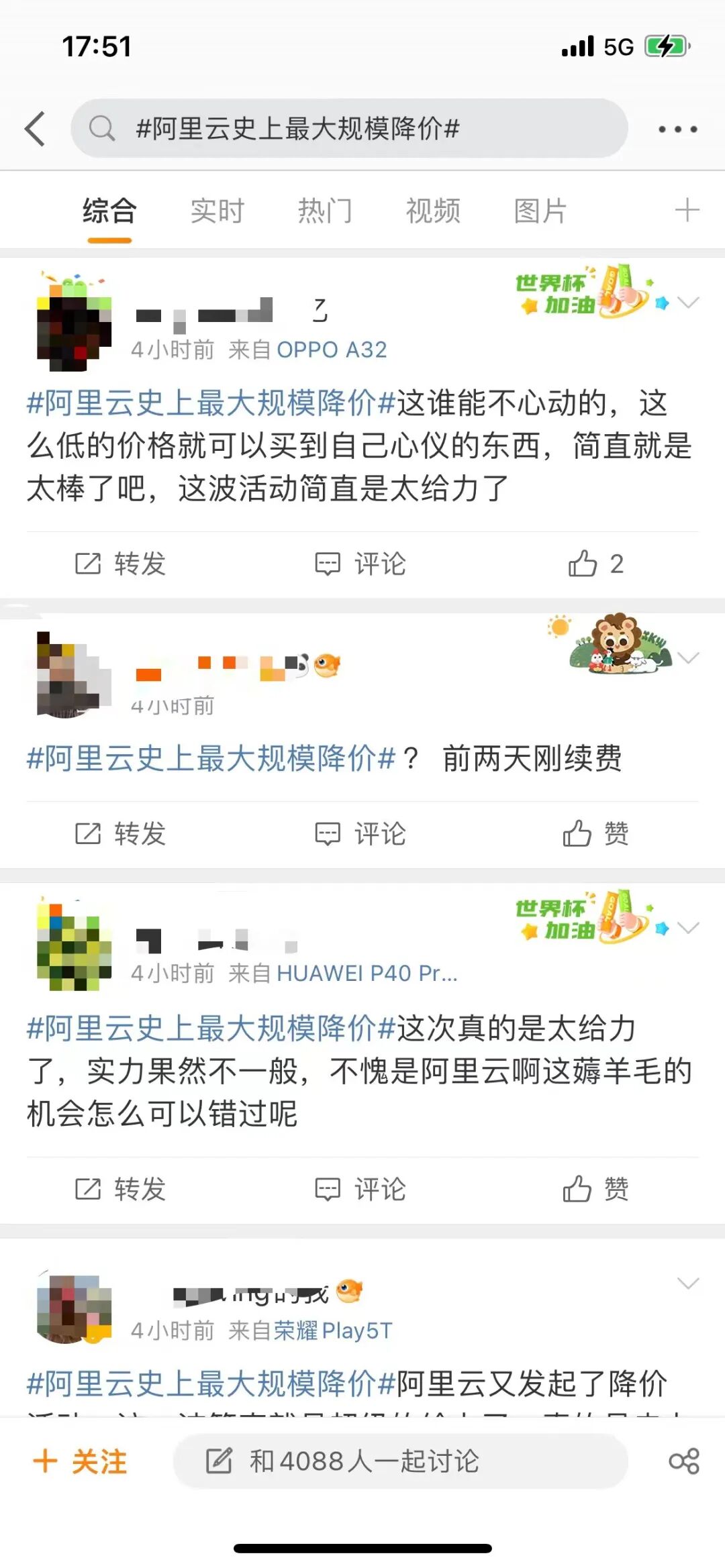 有意思的是,阿里云降价引发的“地震”也伴随社交媒体扩大到了行业之外。在新浪微博中的#阿里云史上最大规模降价#话题中,存在不少购买热搜后才会出现的“水军”内容,这也自侧面佐证了降价动作更多是偏向市场层面,而非单纯地响应趋势。