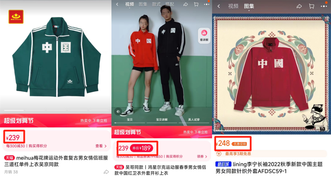 要知道,同样是经典的“中国”系列运动服,梅花、李宁、鸿星尔克的售价不及阿迪达斯的一半。