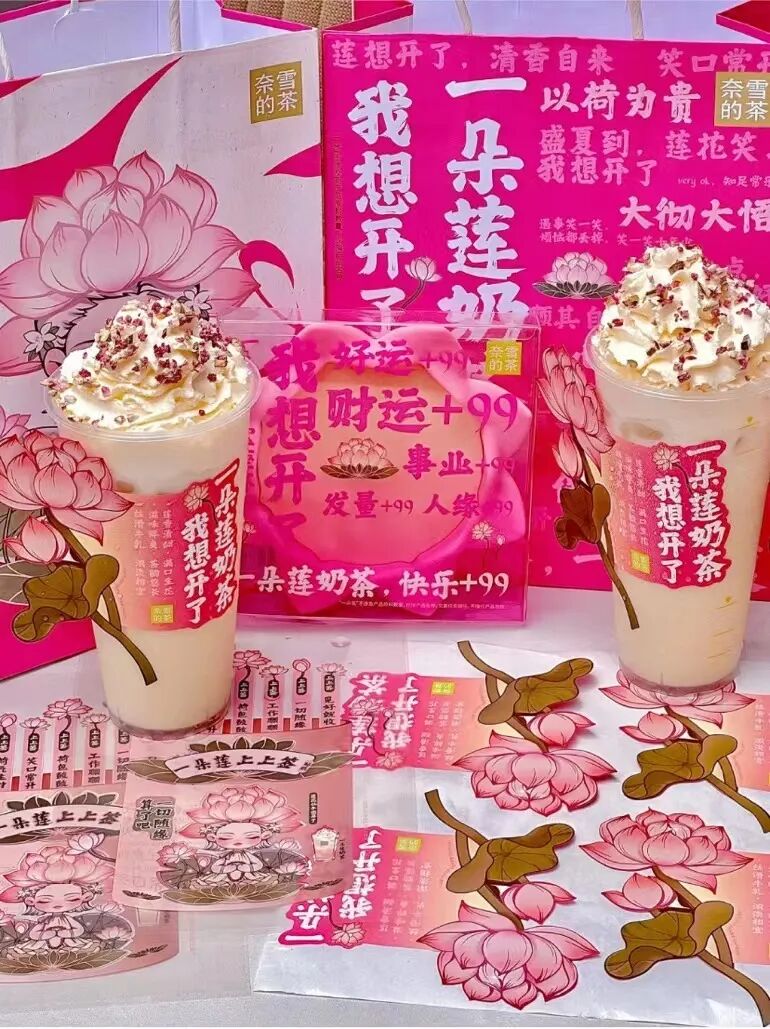 在这样的情况下,奈雪以“莲花”为主题推出新品,冠以好运和解压的意义,用自己的方式安抚了大众情绪。