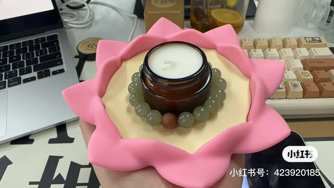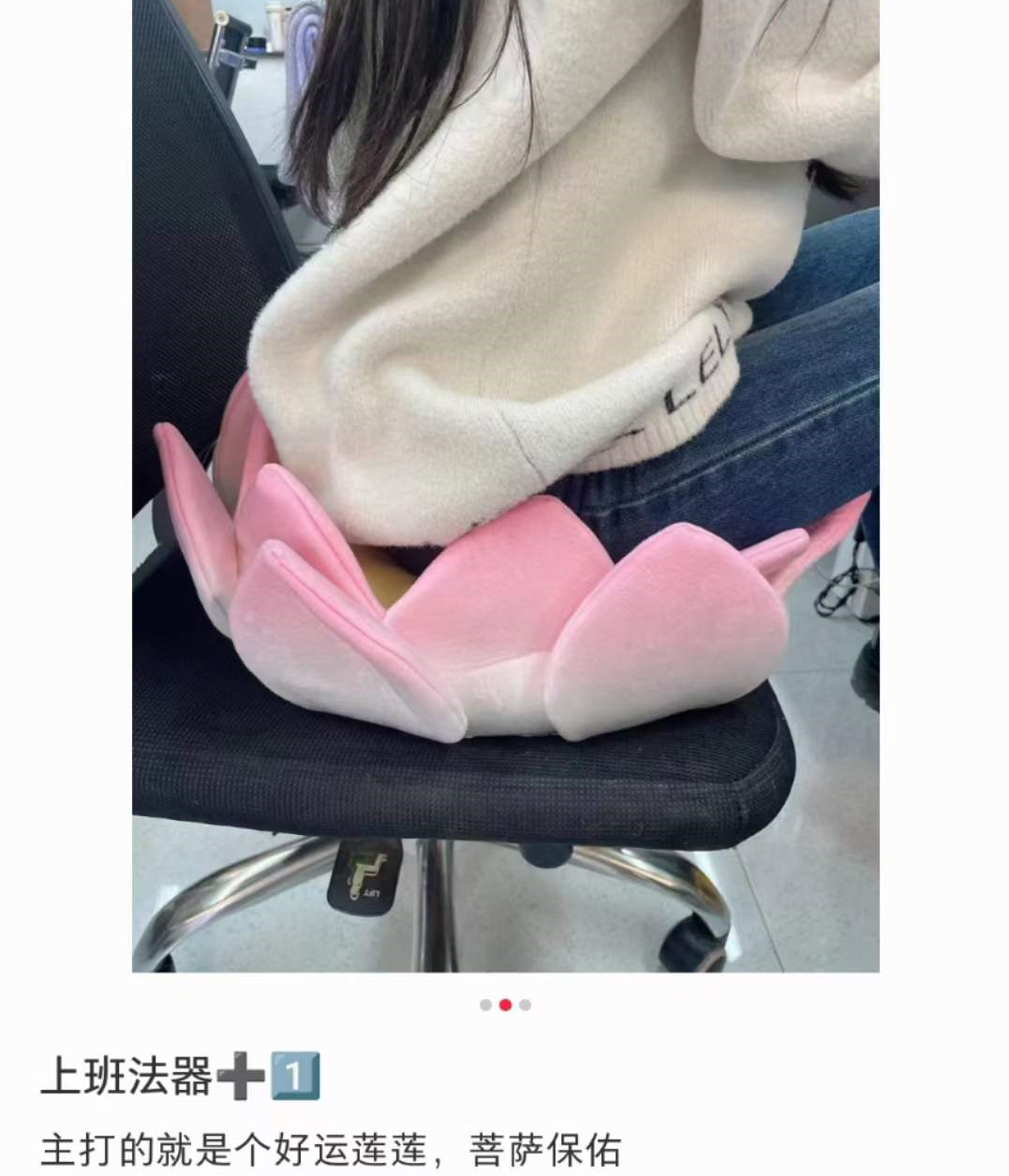 如果你是我的老读者朋友,一定在过往的文章见过这两张图:这是前段时间在小红书火起来的,被打工人称为“上班法器”的莲花坐垫。在我看来,其主打就是一个心理层面的清火降燥,以及谐音上的增添好运~这张呢,则是卫龙去年双十一在旗舰店首页打出的海报,模特怀抱辣条、手持莲花的姿态以及看透一切般的淡漠神情,展现了佛系催单的心态。