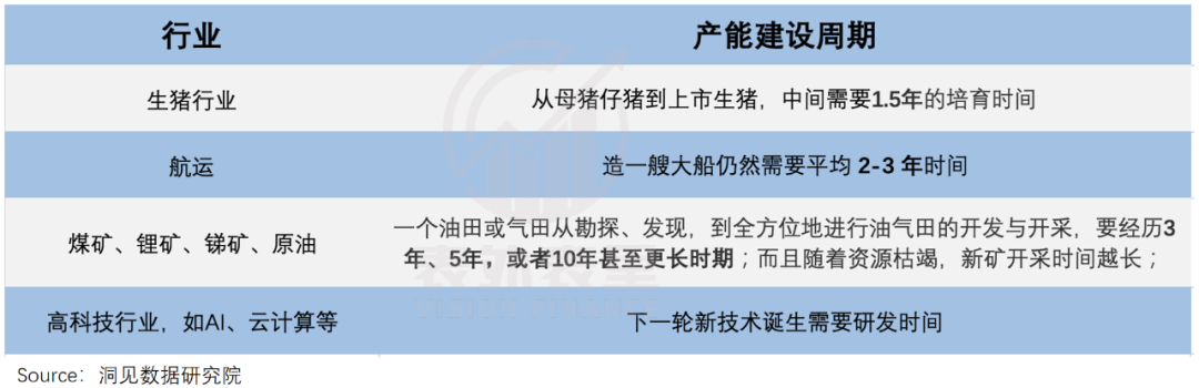 这是经历过供给出清后的普遍情况,毕竟大家都要经历一个产能建设周期。不过,不同行业补能的难度是有差异的。