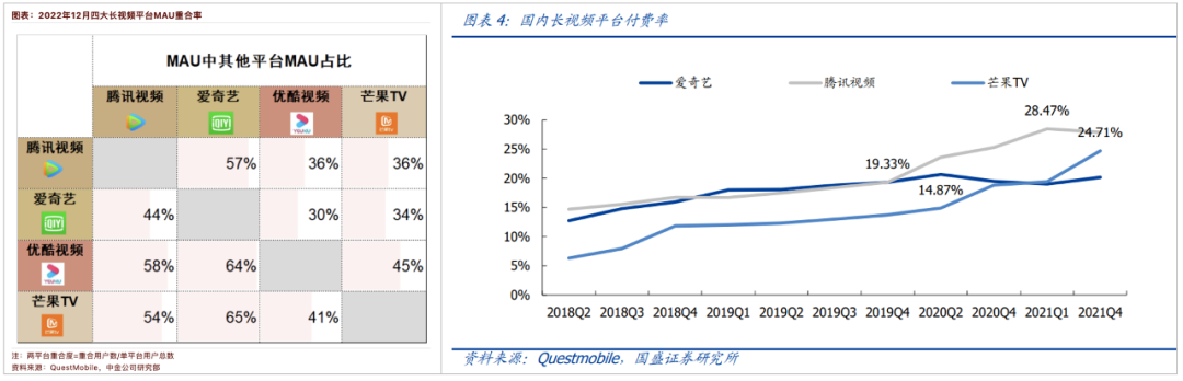而内容维度不同,即便各平台之间的用户重叠度最高达65%,但各家的会员付费率、用户时长却都能同步增长。