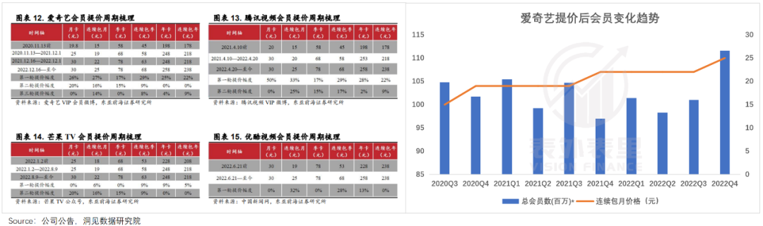 以爱奇艺为例,2020、2021年的两次调价,当季会员数都出现下滑;而2022年底涨价时,2022Q4的会员数却是逆势增长的。