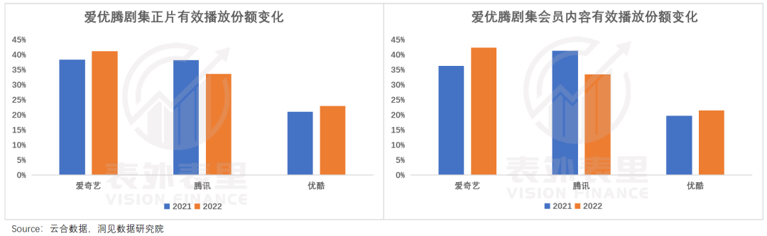 在年初《人世间》《开端》,三四季度《苍兰诀》《卿卿日常》《风吹半夏》等爆剧连番推出下,爱奇艺2022年剧集正片有效播放份额同比提升3.0%,其中剧集会员内容播放份额42.4%,同比提升6.1%。