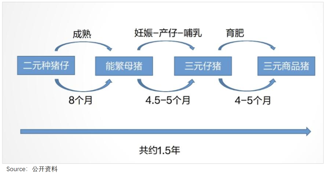 生猪行业则不同,育苗、育仔和育肥过程都需要时间,要吃上新一茬猪肉,得等上近1.5年。