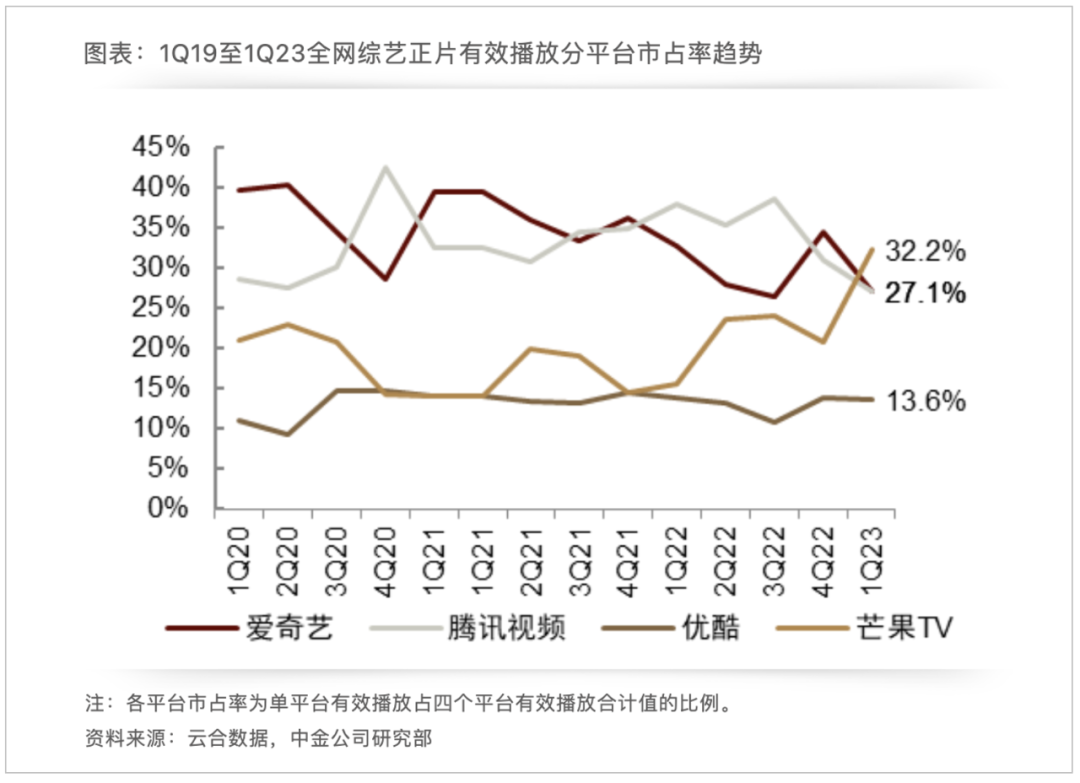 毕竟就表现来看,综艺强劲的芒果TV,在行业疲软的2023年初,市占率逆势提升达到32.2%,综艺优势继续增强。
