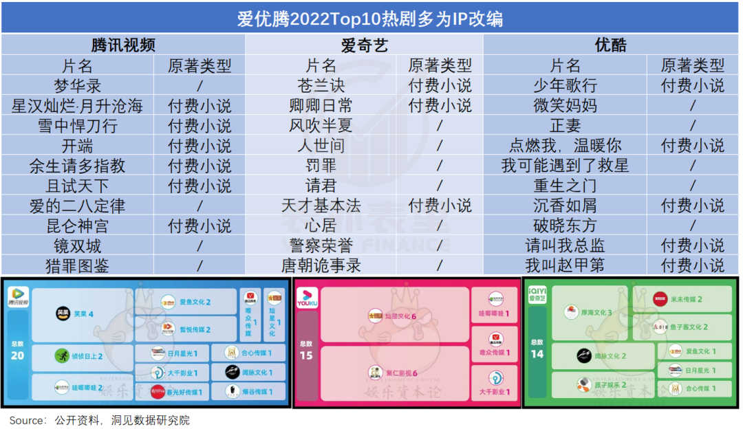 而内容制作方和工作室的情况,也是类似——优质的IP资源、剧集资源,都会流向成功概率更高的地方。各个工作室或经纪公司与各平台,往往也是稳定合作的关系。