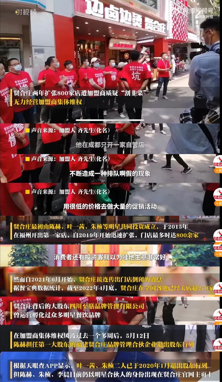 随着陈赫、叶一茜和朱桢等股东相继全身而退,贤合庄只剩众多加盟商在泥潭挣扎。